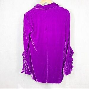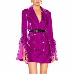 Caroline Constas Ruffle double breasted blazer in size XS, fuchsia/purple color. Can be worn as a blazer or a dress. New with tag, no flaws. Ruffle split sleeves. It is a bit oversized and can fit a size small IMO. Measurements are approximates only. A video is taken to appreciate the true color of the item.