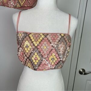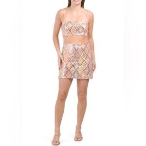 Caroline Constas Sequin Crop Top & Skirt Set Pink Geometric Party Womens size 10