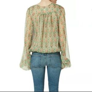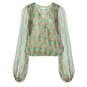 Caroline Constas- Silk Lurex Chevron Printed Balloon Sleeve Top