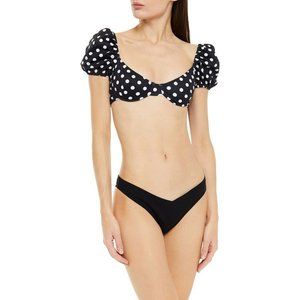 Caroline Constas Skyros Bikini Top Black Polka Dot Ruffle Swim Resort M NWT $195