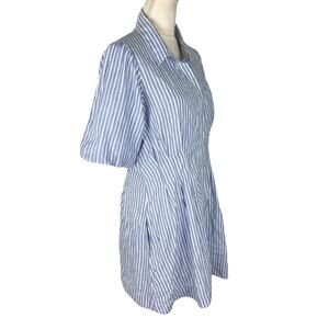 Caroline Constas Striped Blue White Shirt Dress 100% Cotton Size Large NWT