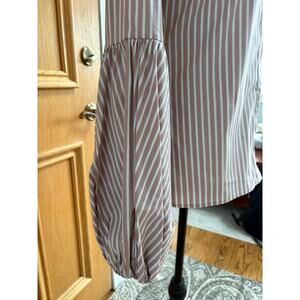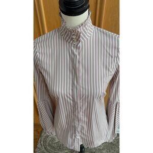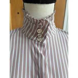 Caroline Constas Striped High Neck Puff Sleeve Blouse Pink White Women’s S