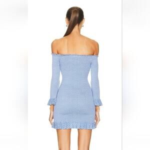 Caroline Constas Tilly Dress Blue White Mini Polka Dot Small Off the Shoulder