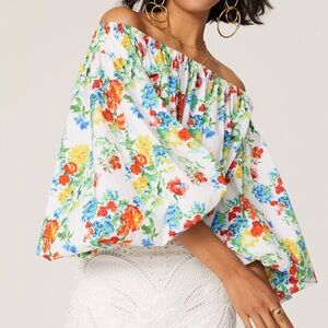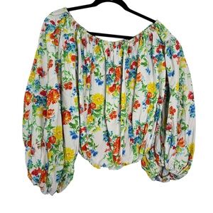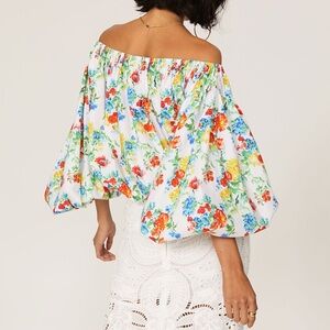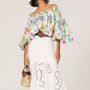 Voluminous puff sleeves balance an off-the-shoulder, cropped silhouette for a chic summertime look by CAROLINE CONSTAS.