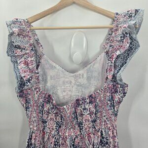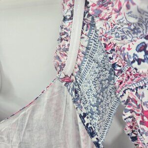 Caroline Constas White Diamond Floral Bohemian Tired Maxi Dress Small FLAW