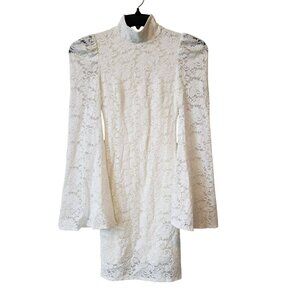 Caroline Constas White Lace Long Sleeve Mini Dress Bridal LWD Priscilla Presley