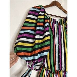 Caroline Constas Womens XS Striped Bella Dress Rainbow Striped Tiered Ruffle