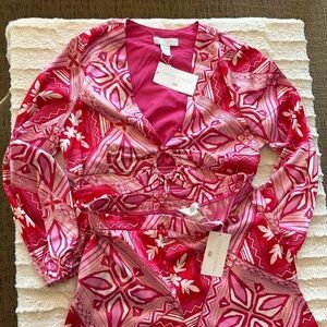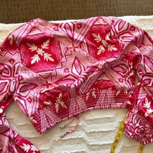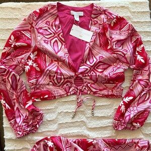 Caroline Constas two-piece set printed long sleeve cropped top & wide leg pants