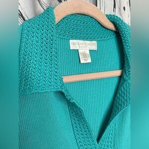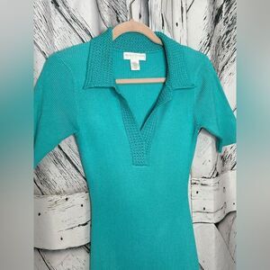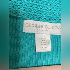 Caroline Constas Midi Dress Ribbed Knit Crochet Collar Short Sleeves M