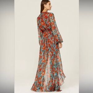 Preloved Gently Used Caroline Costas VIVIAN ASYMMETRIC RUFFLED FLORAL-PRINT SILK-CHIFFON