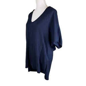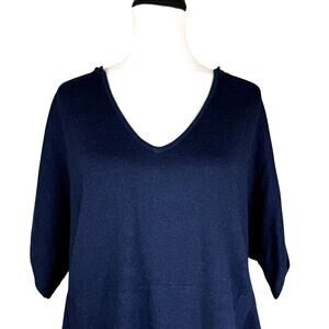 Caroline Grace NWT Navy Hooded Pocket Short Sleeve Cashmere Blend Knit Sweater