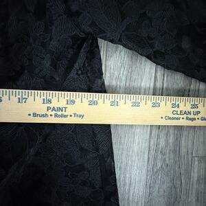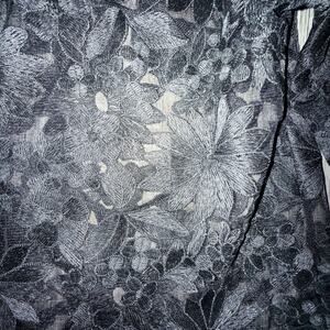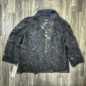 Elevate your wardrobe with this stunning Caroline Rose black floral mesh jacket, featuring intricate embroidery and luxurious 100% silk trim. Made in the USA with imported materials, this jacket combines nylon, polyester, and silk to create a sheer, lightweight, elegant piece perfect for layering at formal events or sophisticated evenings out. Originally priced at $245, it’s brand new with tags and ready to wear. The floral embroidered overlay adds texture and class, while the silk trim offers a touch of refinement. A true wardrobe statement piece