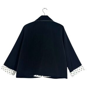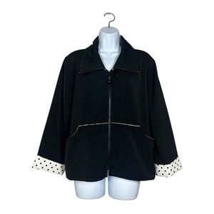 Caroline Rose Black Zip Front Jacket Polka Dot Cuff Pockets Womens Size Medium