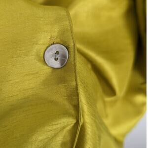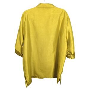 Caroline Rose Faux Raw Silk Button Front Shirt Chartreuse Tab Roll Sleeve 2X