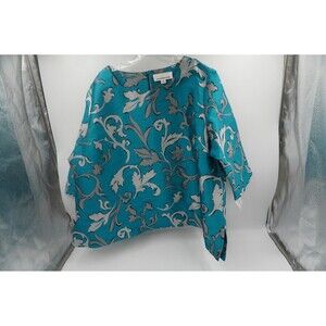 New with tags Caroline Rose NWT Turquoise Blue & Silver Damask Floral Blouse Plus Size 3X. This Caroline Rose blouse is a sophisticated and stylish piece, perfect for adding a touch of elegance to your wardrobe. The top features a vibrant turquoise blue background with a detailed silver/gray floral, damask, or filigree-style pattern. With a classic boatneck neckline and a relaxed fit, it embodies the brand's signature "lagenlook" and "artsy" aesthetic. This versatile blouse is suitable for various occasions, from casual outings to more dressed-up events.