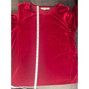 Caroline Rose Red Velvet Cold Shoulder Top MP Loose Fit Made USA Elegant Design