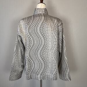 Caroline Rose Silver Chain Print Blazer Size XL Mandarin Collar Metal Button
