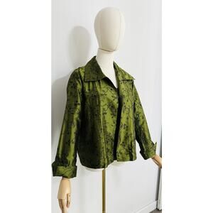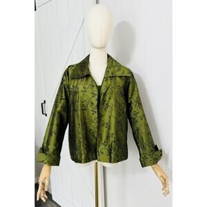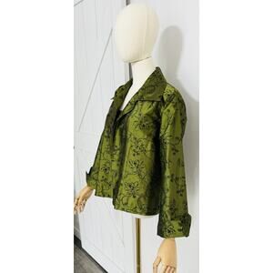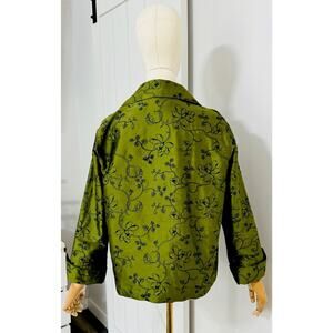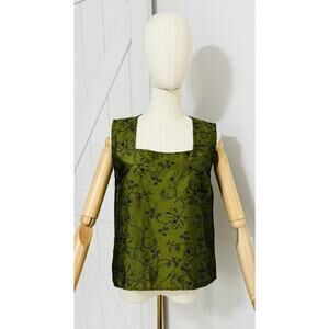 Caroline Rose Size Xs 2 Piece Set Jacket & Tank Top Green Raw Silk Embroidered