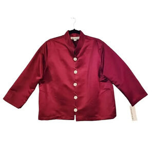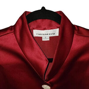 Caroline Rose Women Red Satin Collared Statement Button Blazer Jacket Size Large