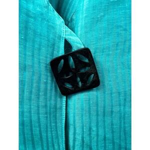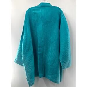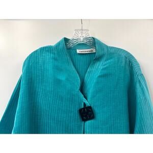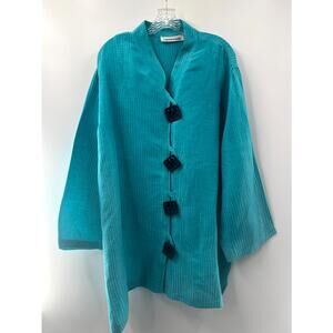 Caroline Rose Women's Blue Striped Silk Mock Neck Long Sleeve Jackets Size 1X