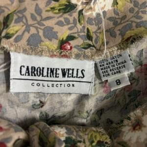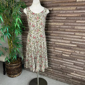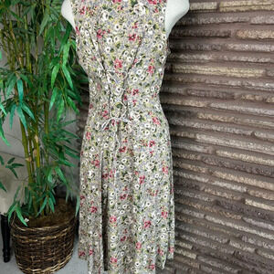 Caroline Wells Vintage 90s Pink Floral Scoop Neck Corset Back Sleeveless Dress