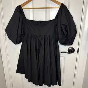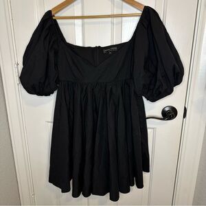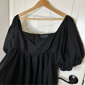 Caroline Constas Black Leigh Babydoll Heart Neckline Puff Sleeve Dress Sz M Glam