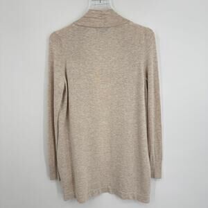 Caroll Paris cardigan sweater 36 open front long line rib knit lagenlook tan