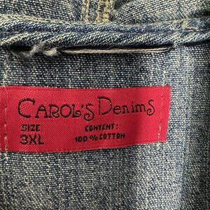 Carol's Denims Jean Hooded Jacket Size 3XL Barn Chore Blue Utility Boho