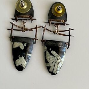 Carolyn Morris Bach Earrings Sterling Silver, 18K gold and stone earrings.