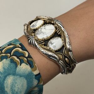 Carolyn Pollack American West 3 Stone Howlite Sterling Cuff Bracelet