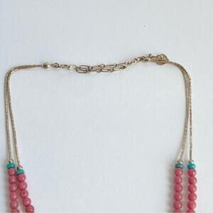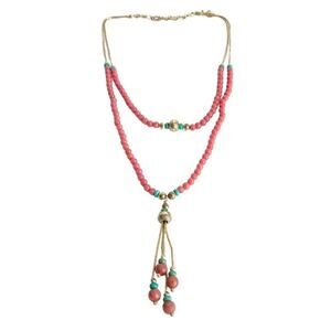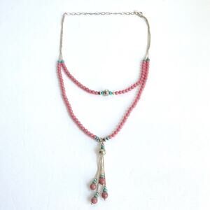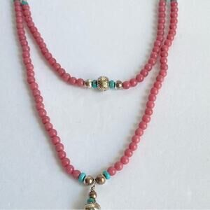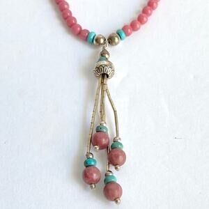 QT 925 Quoc Liquid Sterling Silver Necklace Pink Stone Turquoise Beaded Lariat Carolyn Pollack