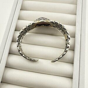 Carolyn Pollack Bracelet Pink Heart Rhodonite Cuff Sterling Silver Hinged 38g