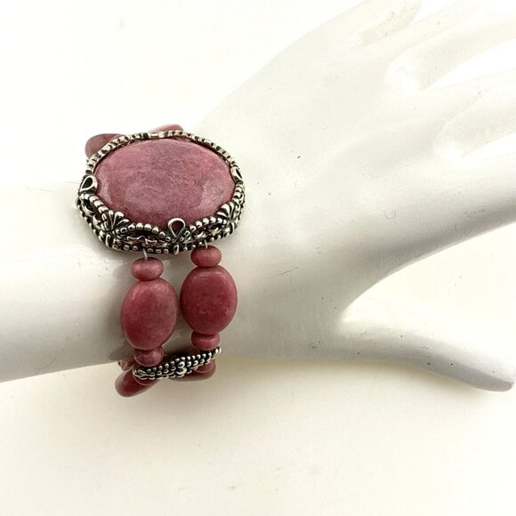 * Pink Rhodonite Beaded Bracelet with Center Oval Cabochon