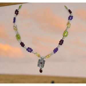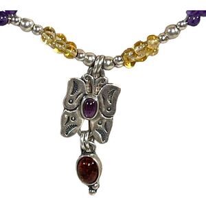 Carolyn Pollack Butterfly Sterling Silver Amethyst Garnet Peridot Necklace 17”