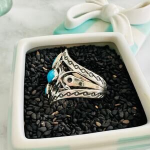 Carolyn Pollack Clover Turquoise .925 Sterling Silver Ring Size 7 Fine Fashion