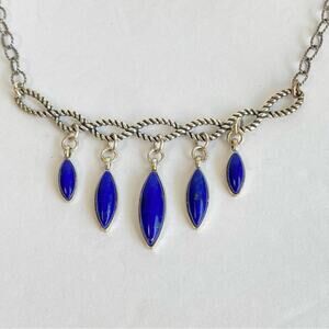 Carolyn Pollack Lapis Lazuli Necklace Sterling Silver Blue Gemstone Drop Bib Choker Twisted Rope American West Relios 17”