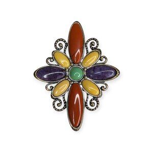 Carolyn Pollack Relios Sterling Silver MultiStone Cross Pendant/Brooch/Pin