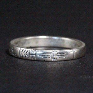 Introducing a contemporary ring from QVC, expertly crafted by Carolyn Pollack Relios. This Southwest-inspired piece is fashioned entirely from sterling silver and features intricate etching details that add to its unique charm. The ring proudly bears the hallmarks "Carolyn Pollack Relios" and "925," signifying its genuine sterling silver composition and designer origin. In excellent condition, it radiates its flawless beauty. Sized at 9, the band measures 2.8mm in width, providing both style and comfort. With its exquisite design and exceptional craftsmanship, this ring makes a standout addition to any jewelry collection, seamlessly blending contemporary style with timeless elegance.