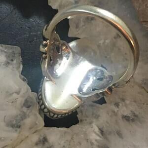 Soothingly Beautiful Carolyn Pollack Vintage Southwestern Style Sterling Silver Oblong Oval Mother of Pearl Cabochon Decorated Ring For Women.