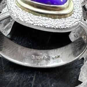 Gorgeous Carolyn Pollack Sterling Silver and 14K Gold Triangle Sugilite with 3 Round Citrine Cabochons Decorated Cutout Ring For Women.