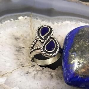Beautifully Unique Carolyn Pollack Sterling Silver 2 Curved Pear Lapis Lazuli Cabochons Decorated Split Shank Ring For Women.