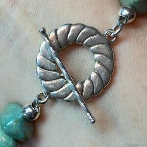 Lovely and Rustic Carolyn Pollack Southwestern Style Sterling Silver Chunk and Smooth Bead Turquoise Toggle Clasp Link Bracelet For Women.