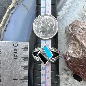 Gorgeous Carolyn Pollack Sterling Silver Diamond Shape Turquoise and Onyx Inlay Decorated Split Shank Ring For Women.