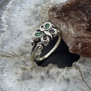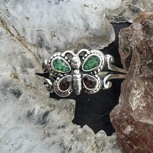 Carolyn Pollack Vintage Southwestern Style Sterling Silver Turquoise Amethyst Chip Inlay Butterfly Ring For Women.