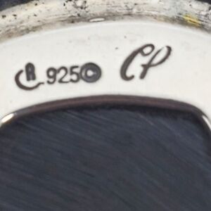 This lovely enhancer is decorated with inlaid turquoise set in beautifully detailed sterling silver.