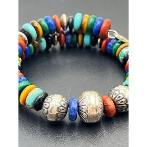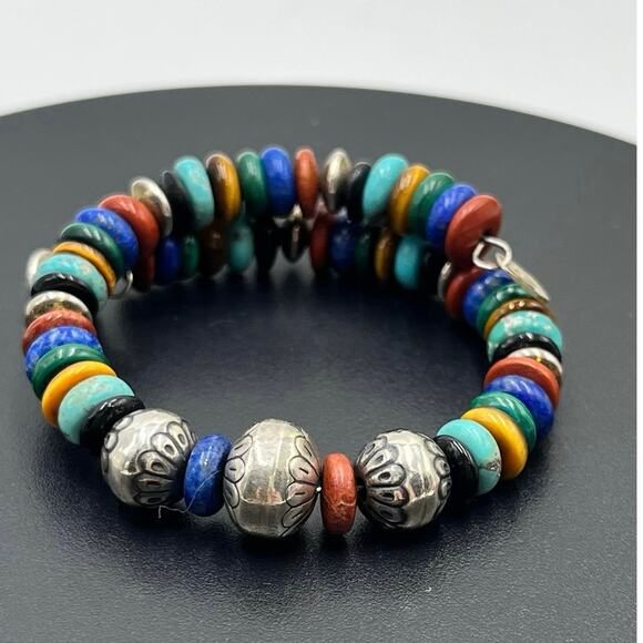 Carolyn Pollack Sterling Turquoise Onyx Malachite Jasper Lapis Coil Bracelet