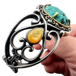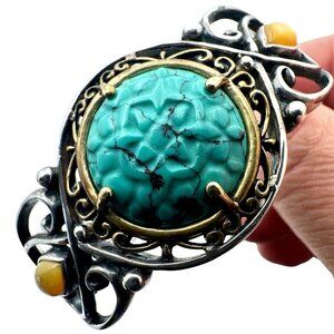 Carolyn Pollack Womens Bracelet Blue Turquoise Pearl Sterling Silver Brass Cuff