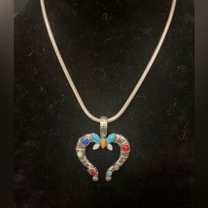 This exquisite pendant in the shape of a squash blossom which showcases its many natural gemstones set in it’s beautifully polished 925 solid sterling silver. The pendant features a captivating blend of silver and red, adding a touch of elegance to any ensemble. Perfect for those who appreciate fine craftsmanship and timeless design.