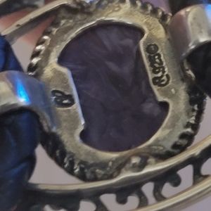 Carolyn Pollack/Relios Sterling Silver Leather Purple Charoite Cuff Bracelet
