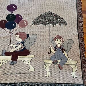 Carolyn Shores Wright Children Angels Throw Blanket Afghan Tapestry Approx 48X66